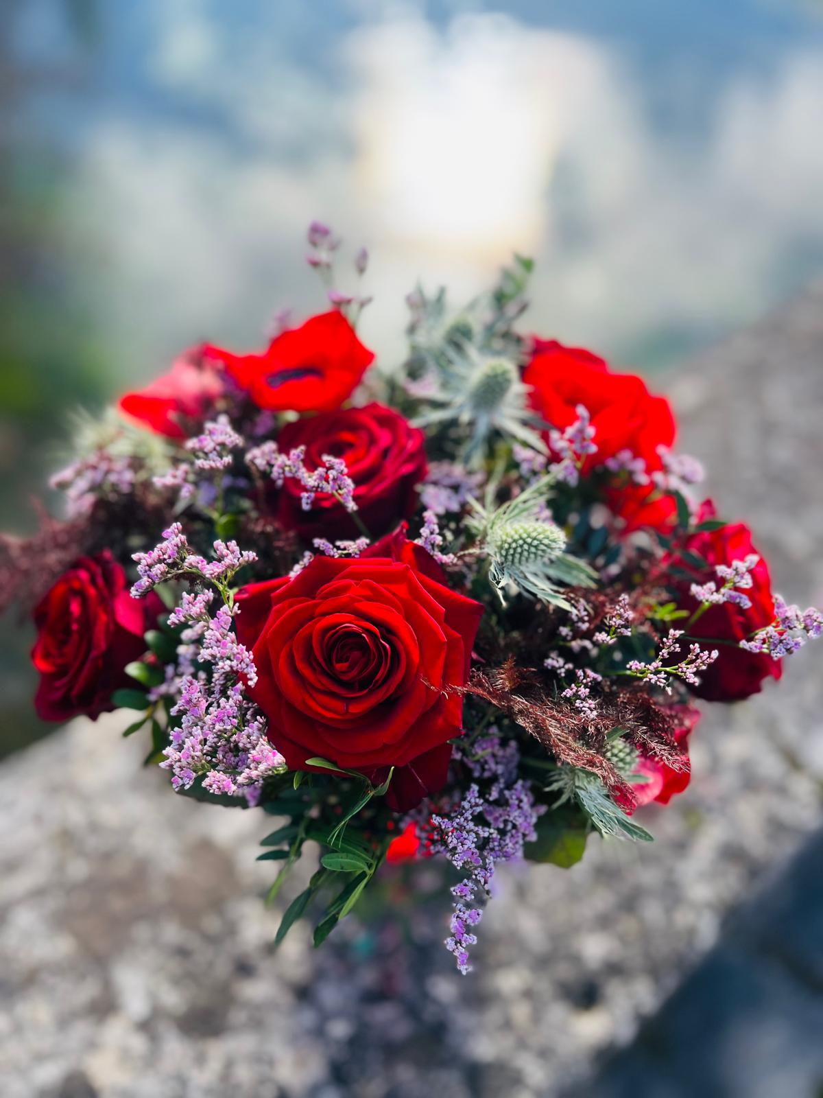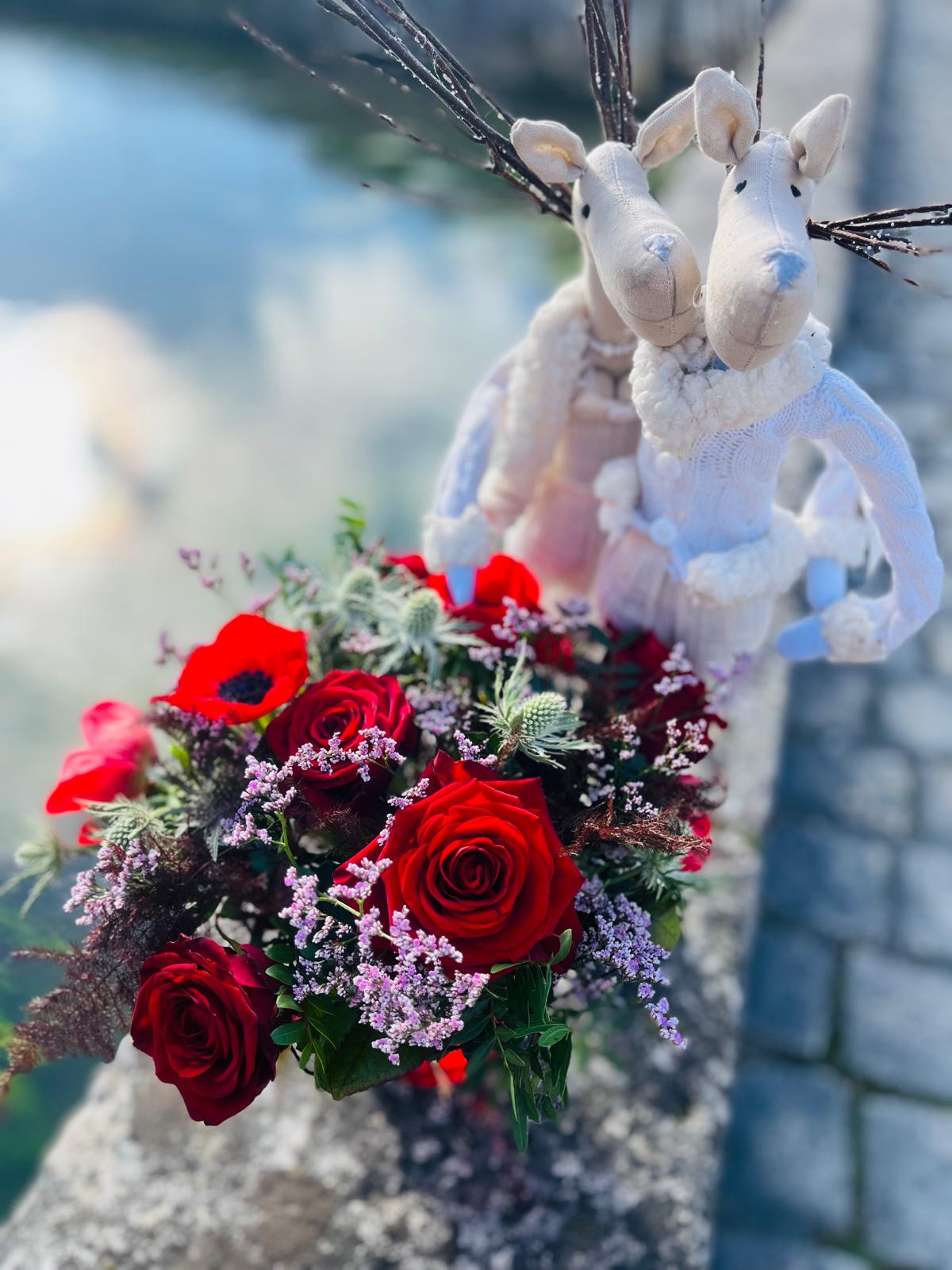 Un bouquet de roses rouge éclatantes et d’anémones pour lui exprimer et réaffirmer vos sentiments.